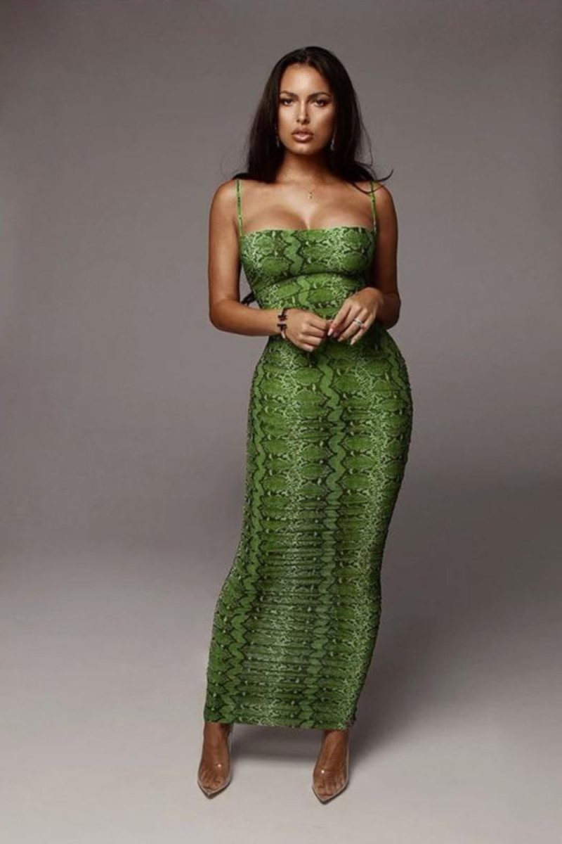 Unleash your wild side with our Snake Skin Backless Elegant Slim Pencil Dress!