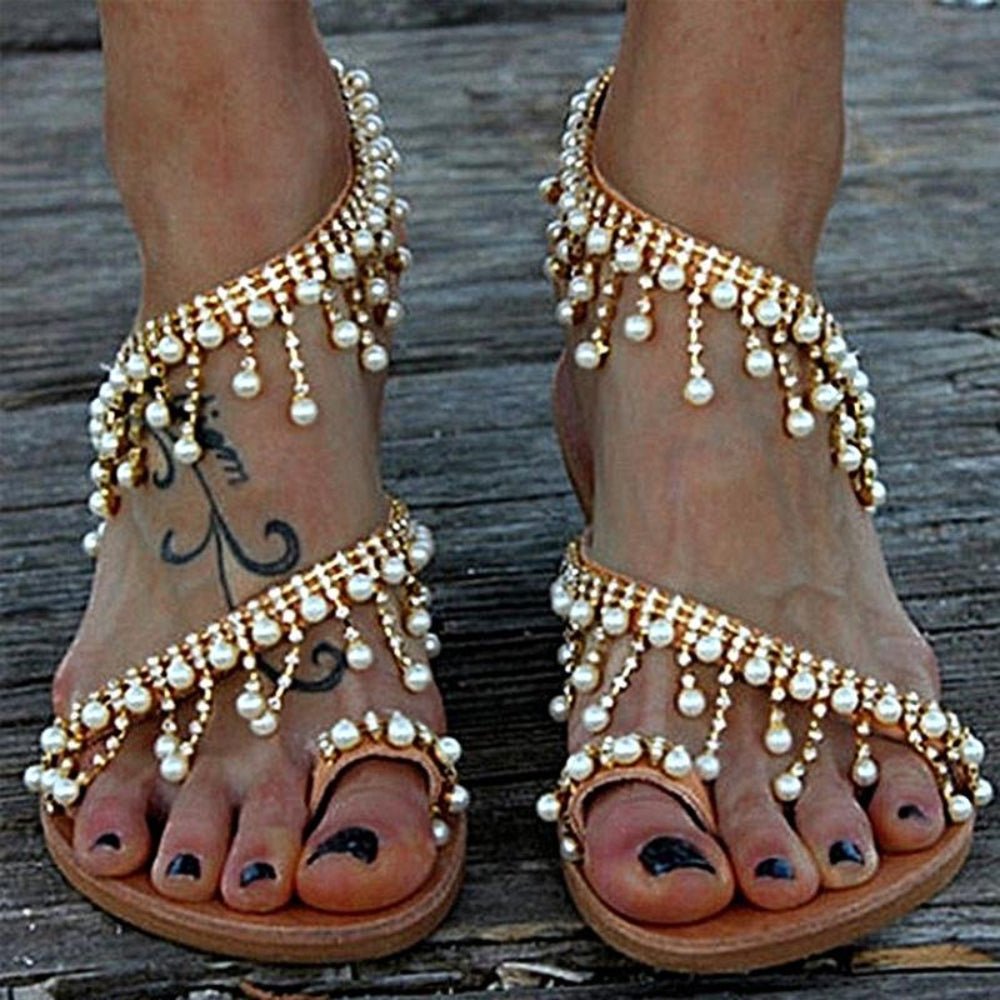 Flat Pearl String Bead Sandals