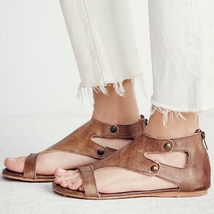 Gladiator Soft Leather Flat Sole Peep Toe Sandals