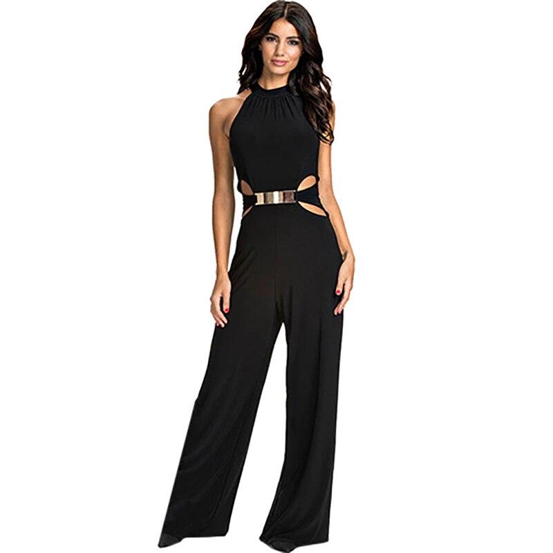 Elegant Hollow Out Jumpsuit Sleeveless Loose Pants