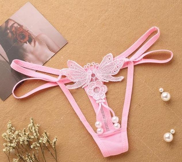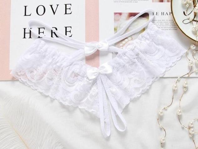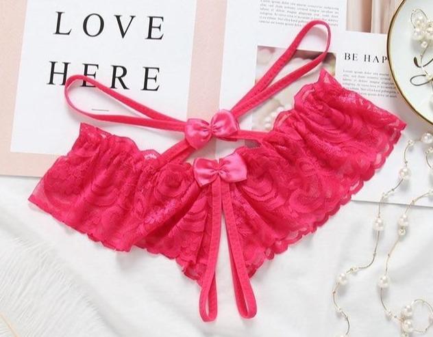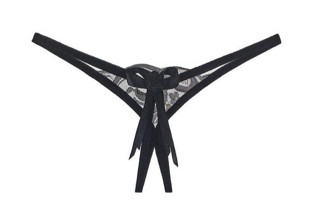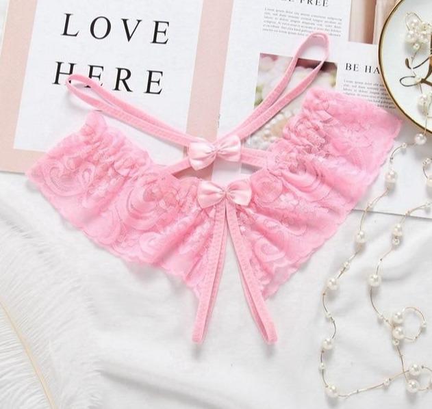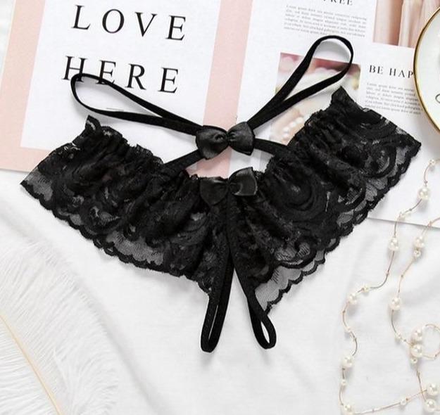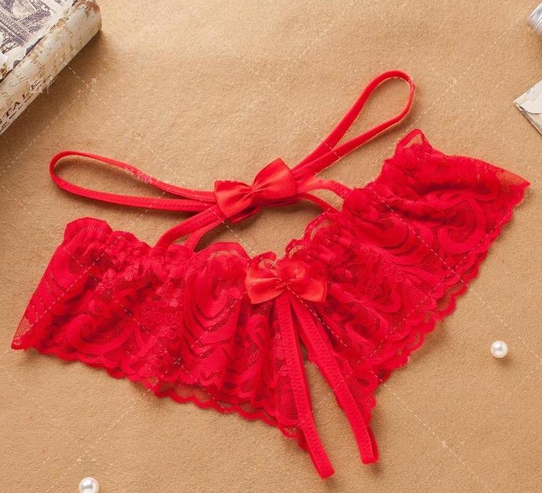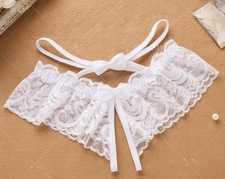 Lace Open Crotch Panties Straps Bow Tie Free Size