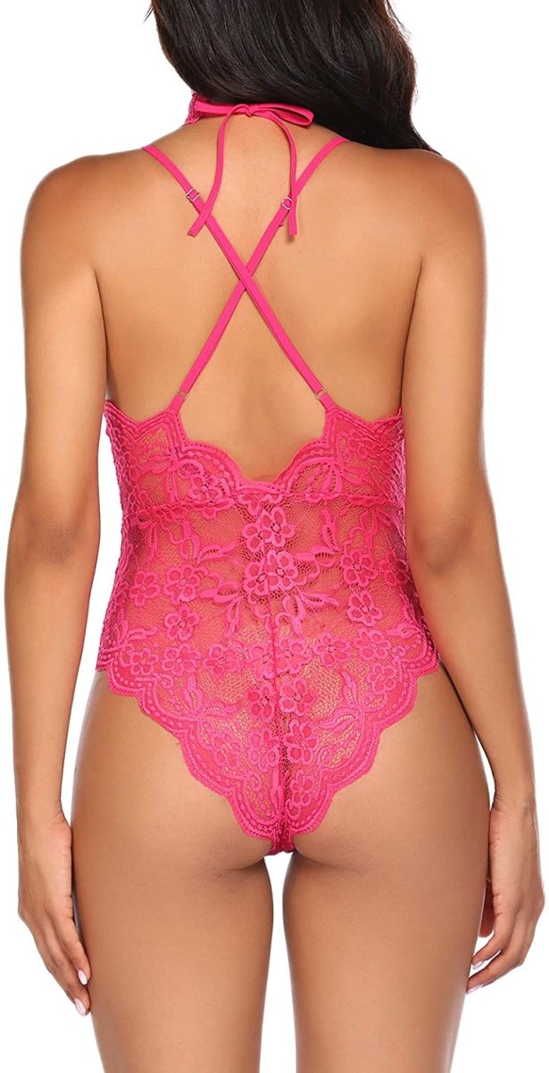 - Sexy teddy lingerie features lace cups with embroidered rose and backless criss-cross adjustable straps to attact you lover's attention, creat sexy bust line and back line