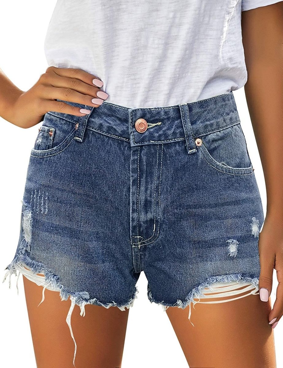 Mid Rise Shorts Frayed Raw Hem Ripped Denim Jean Shorts