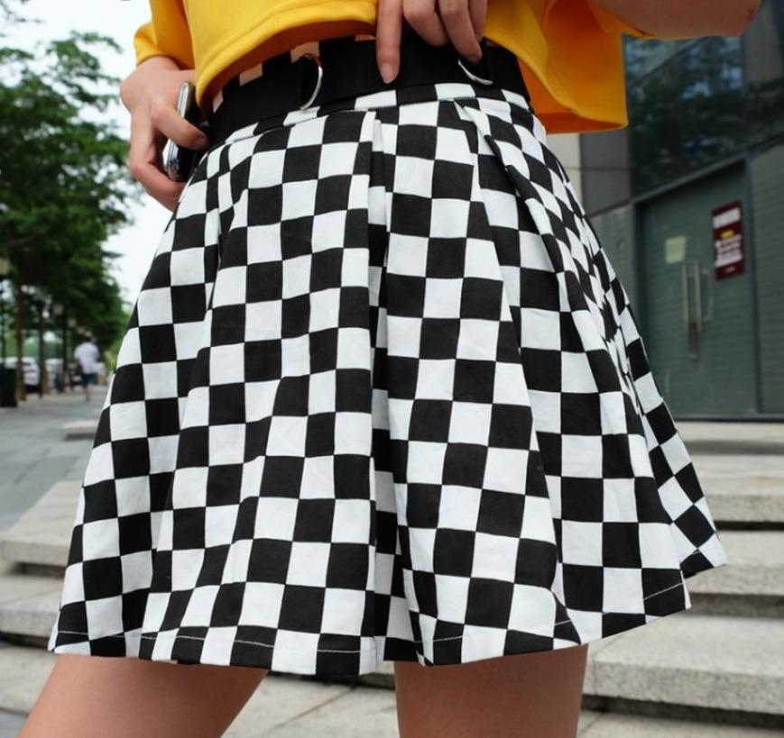 Take a risk and stand out in this bold Pleated Checkerboard High Waist Short Skirt.