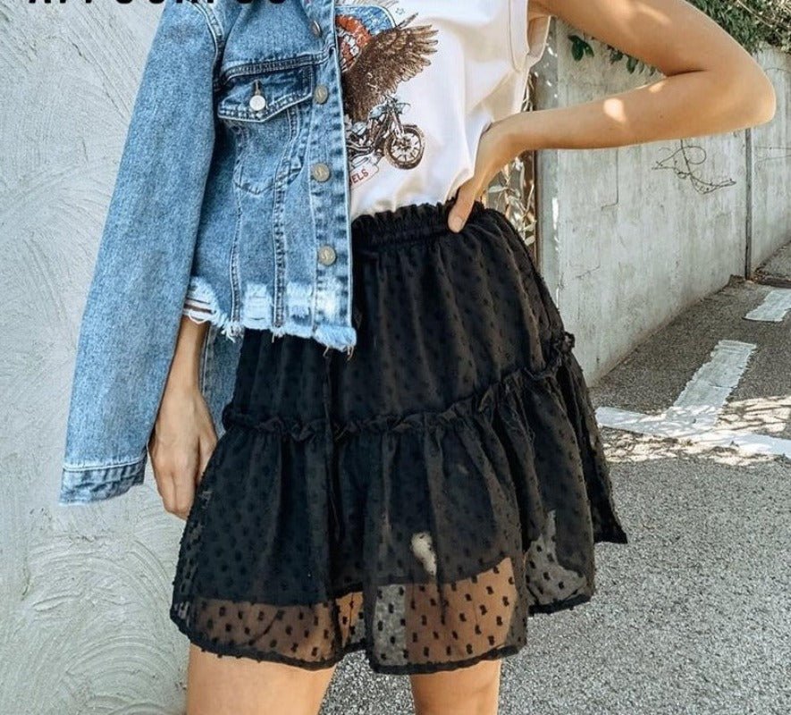 This Dot Ruffle Chiffon Short Skirt is a stunning addition to any wardrobe.