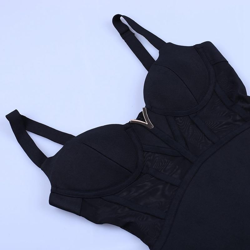 Rayon Bandage Dress Mesh Insert Bandage Black Bodycon