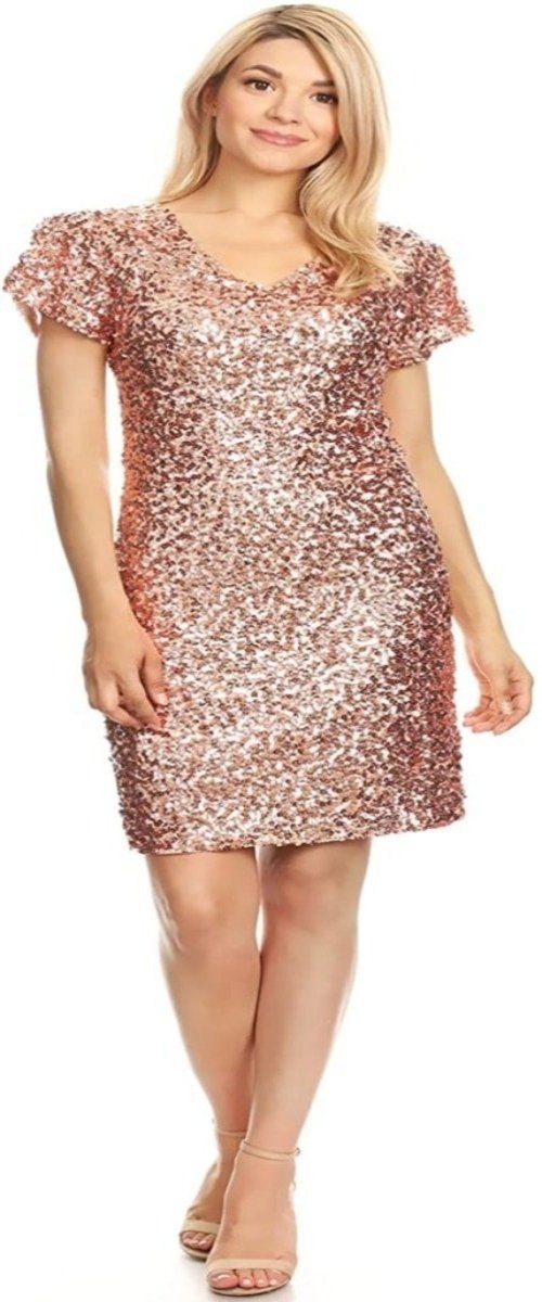 - A TIGHT FIT BODY CONSCIOUS NIGHTCLUB DRESS. A short sleeve all-over sequin dress with v neck and back. Material stretches slightly for a sexy bodycon fit.