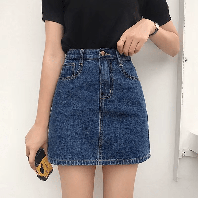 Denim Mini High Waist Blue Hip Jeans Cotton Skirt