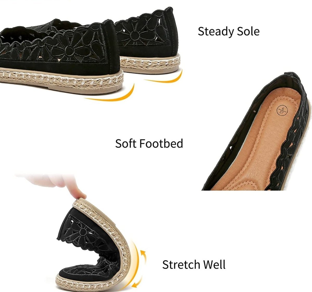 - 【Daisy Cut-outs Design】: Daisy cut-outs form the upper of the flats shoes. The cut-outs also ensure the shoes can breathe freely.