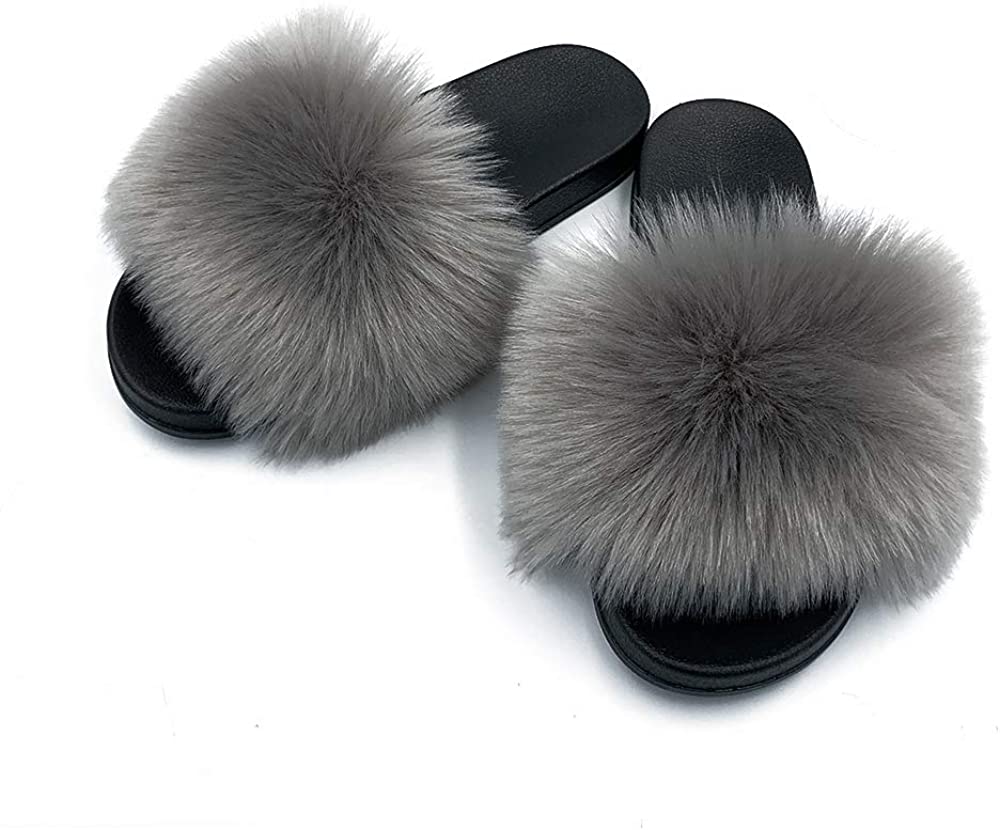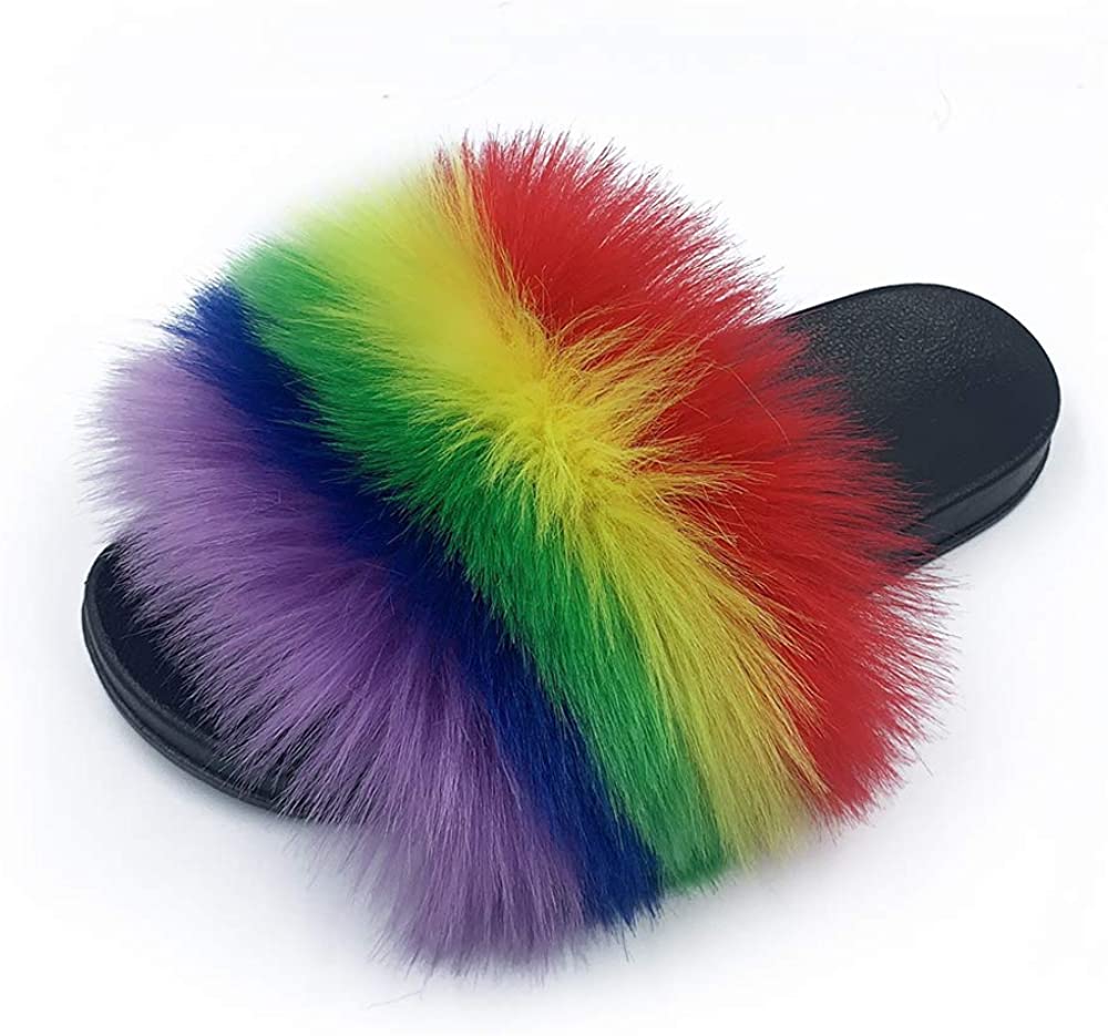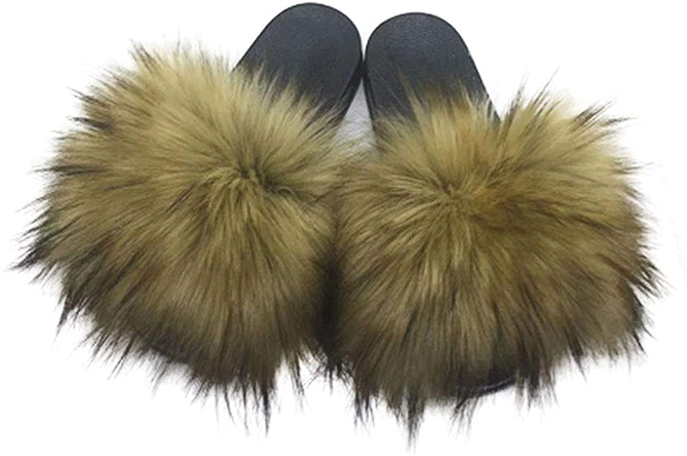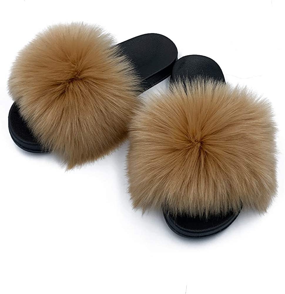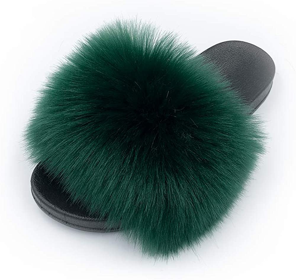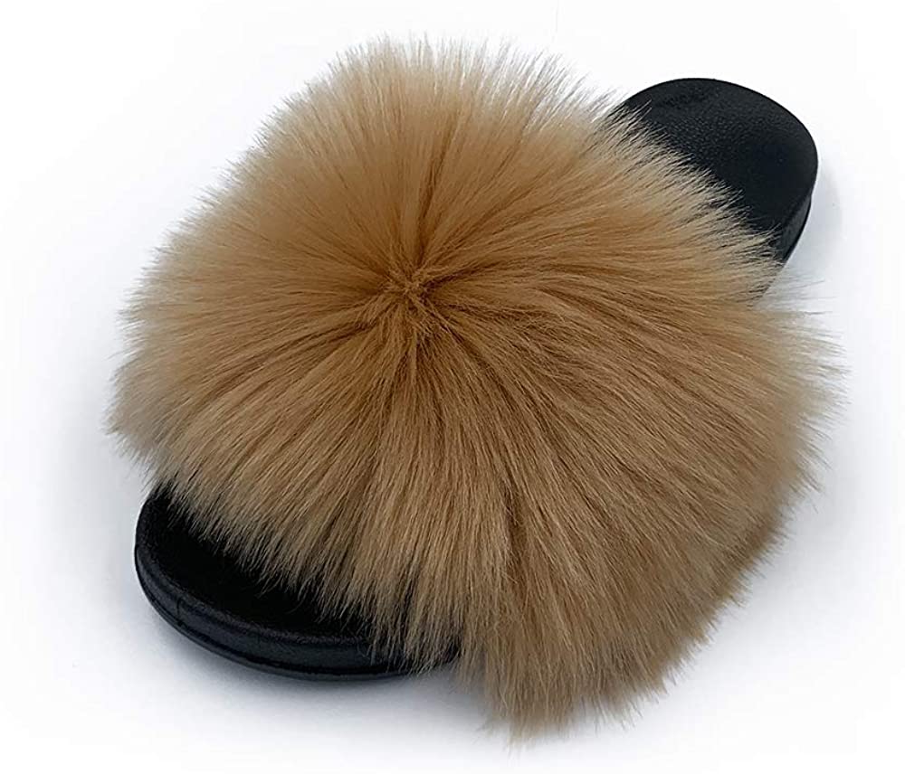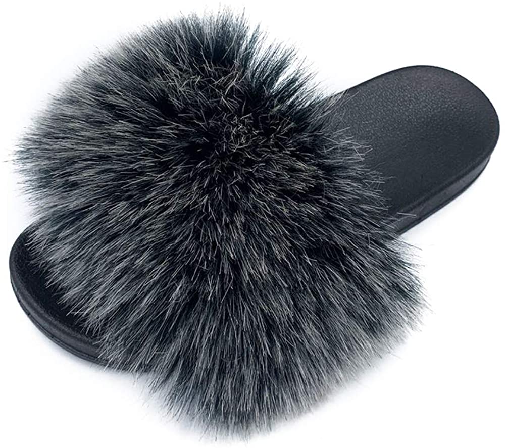 Womens Vegan Fur Slippers Fluffy Fuzzy Open Toe Slides Flip Flop