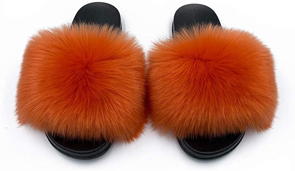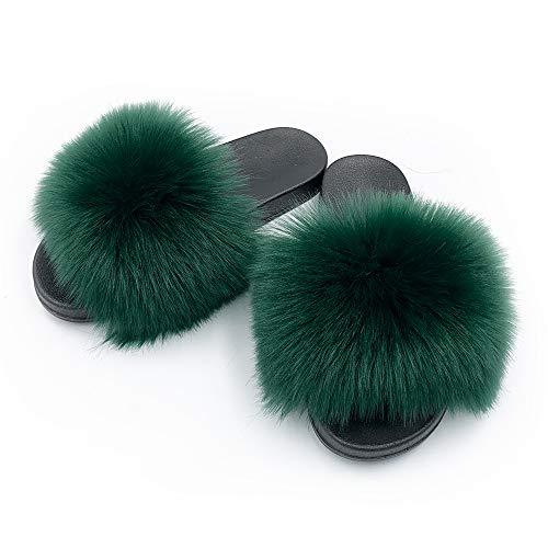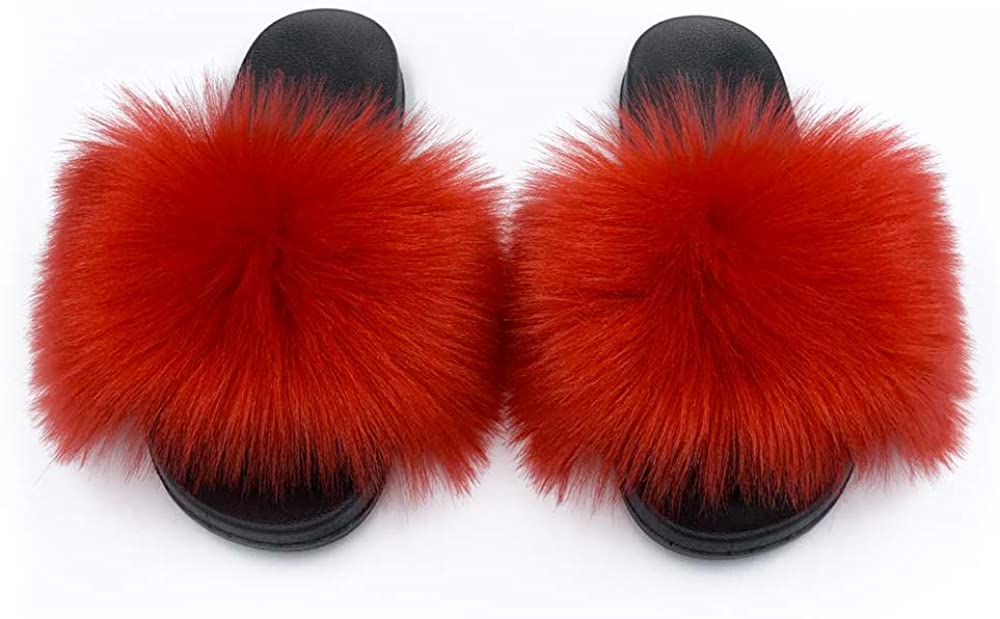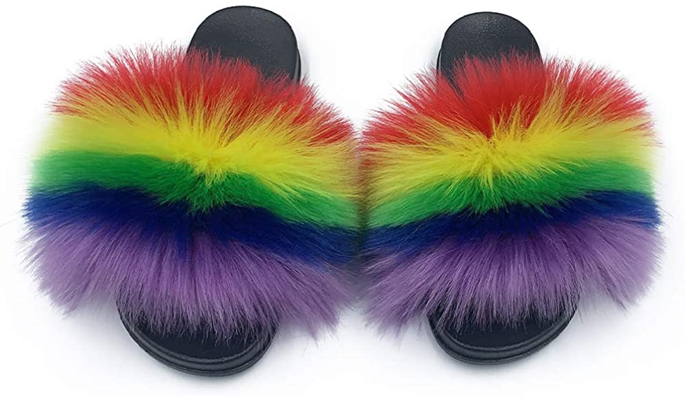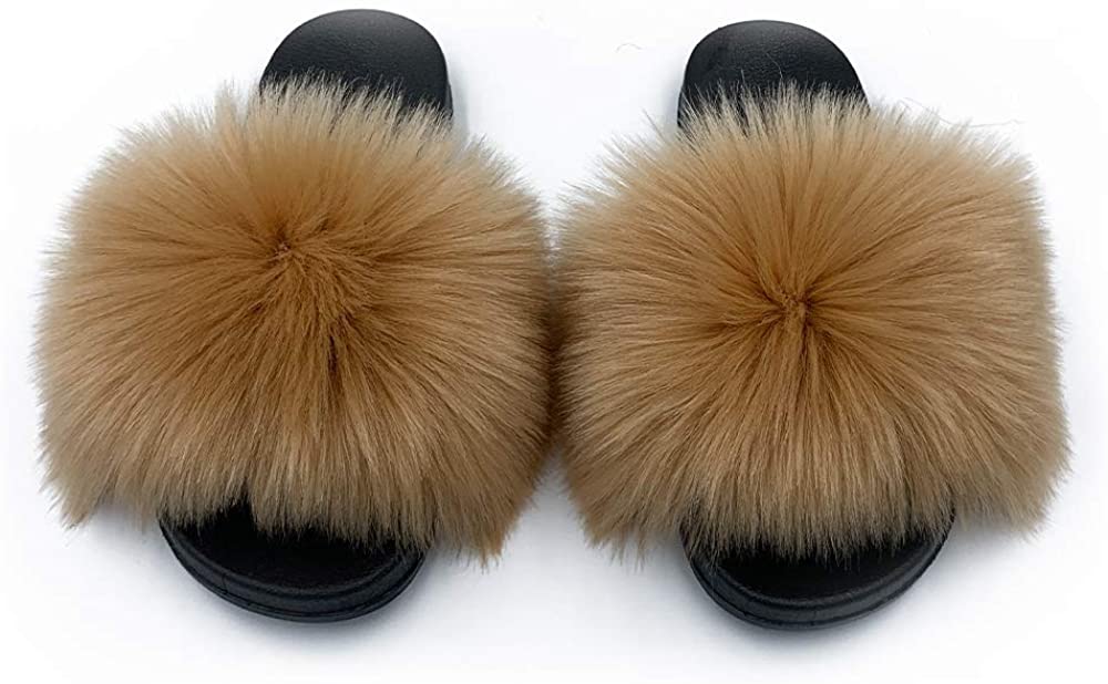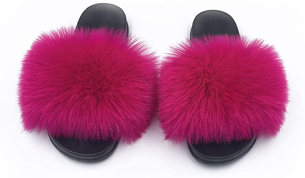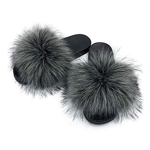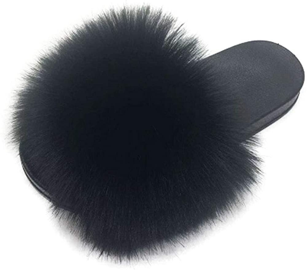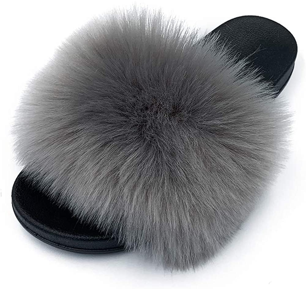 Womens Vegan Fur Slippers Fluffy Fuzzy Open Toe Slides Flip Flop