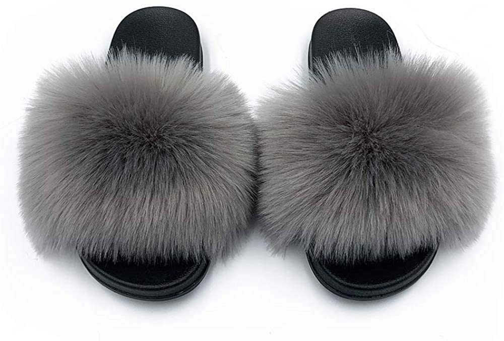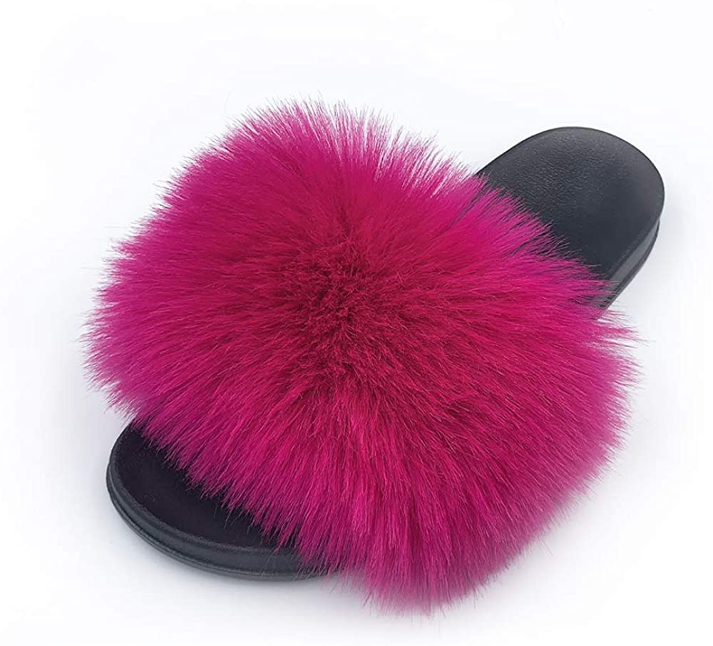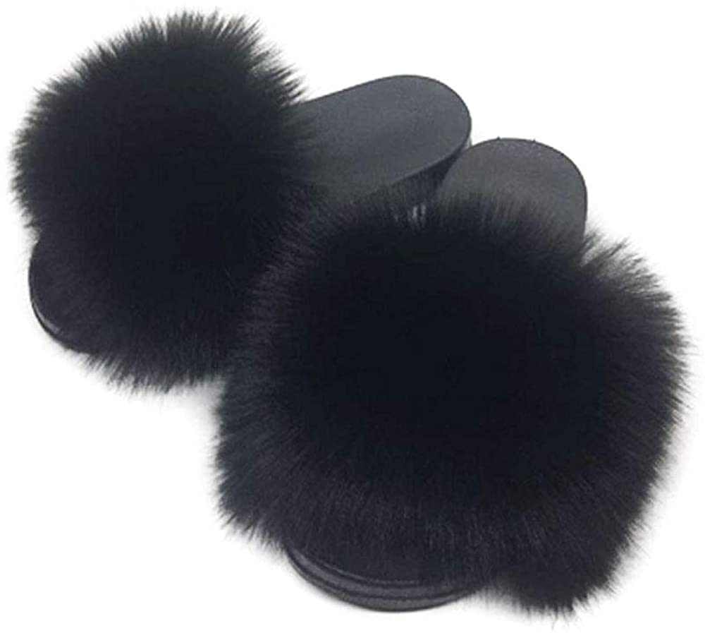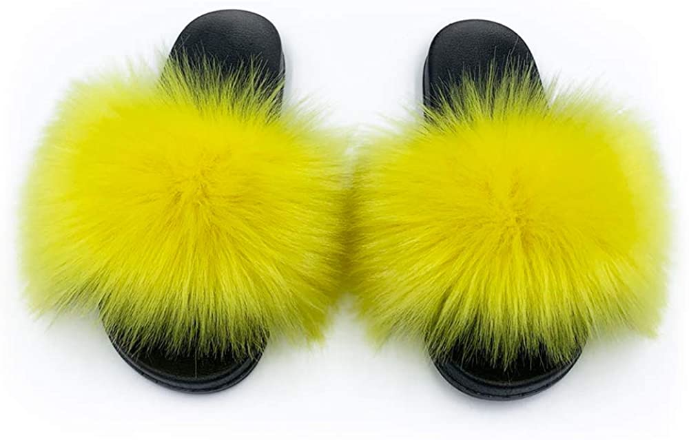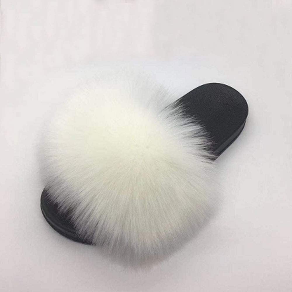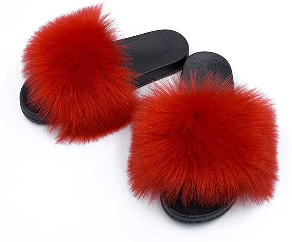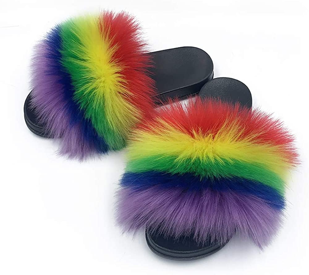 Womens Vegan Fur Slippers Fluffy Fuzzy Open Toe Slides Flip Flop