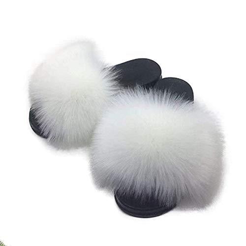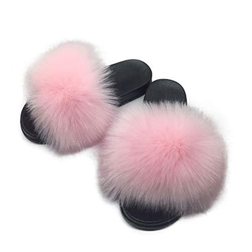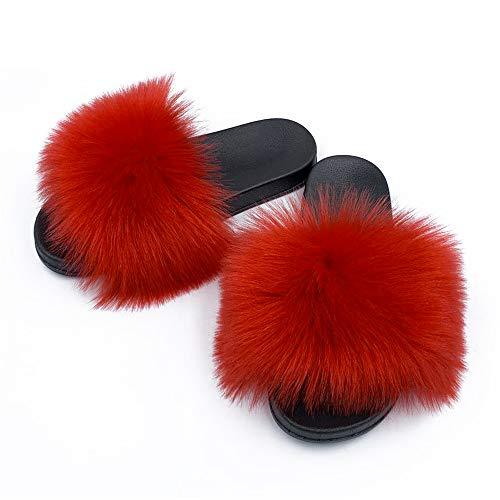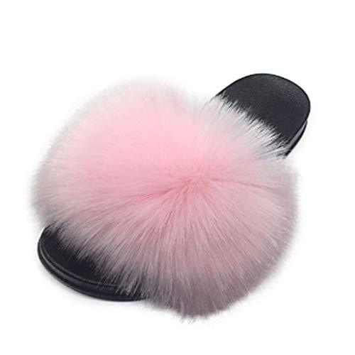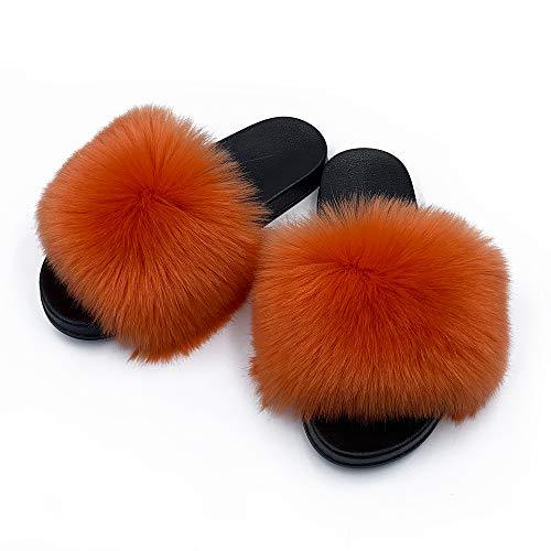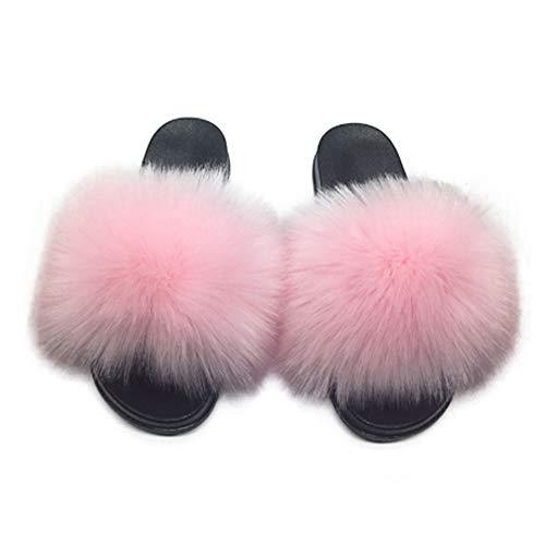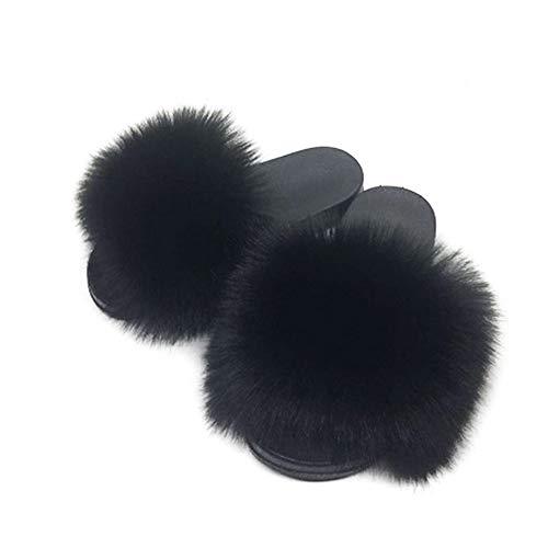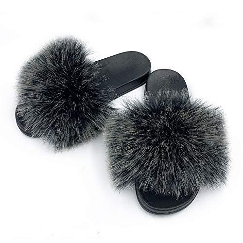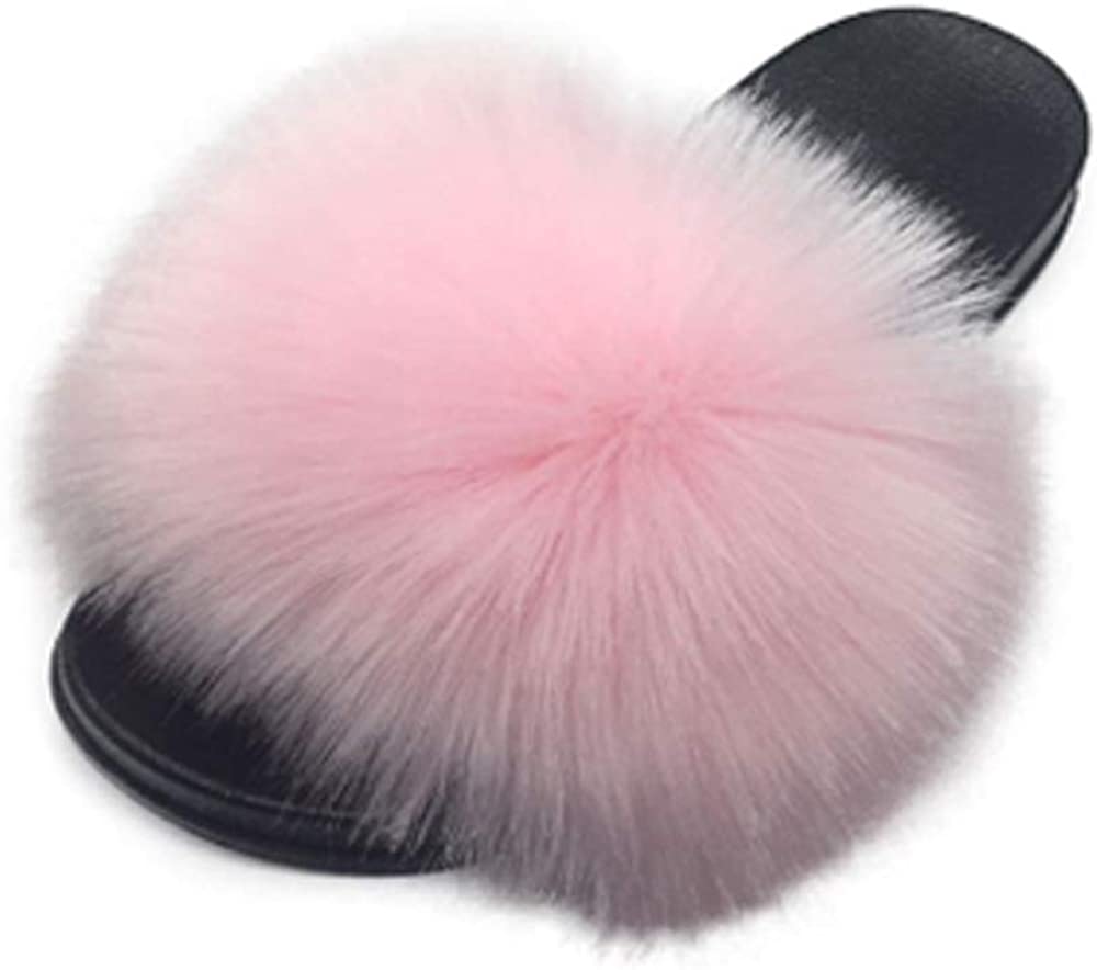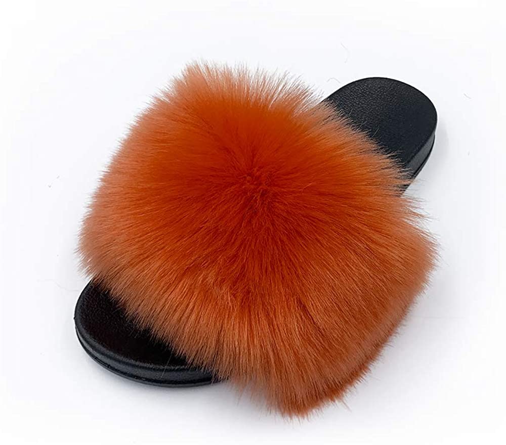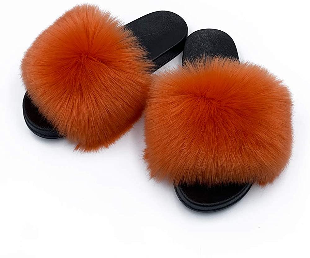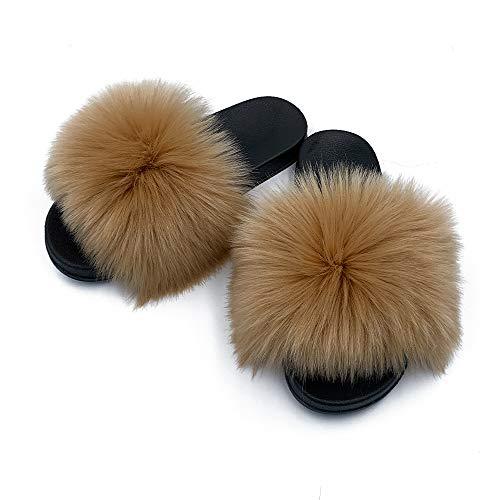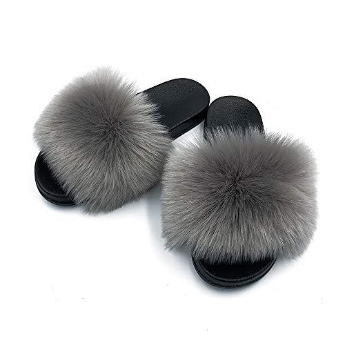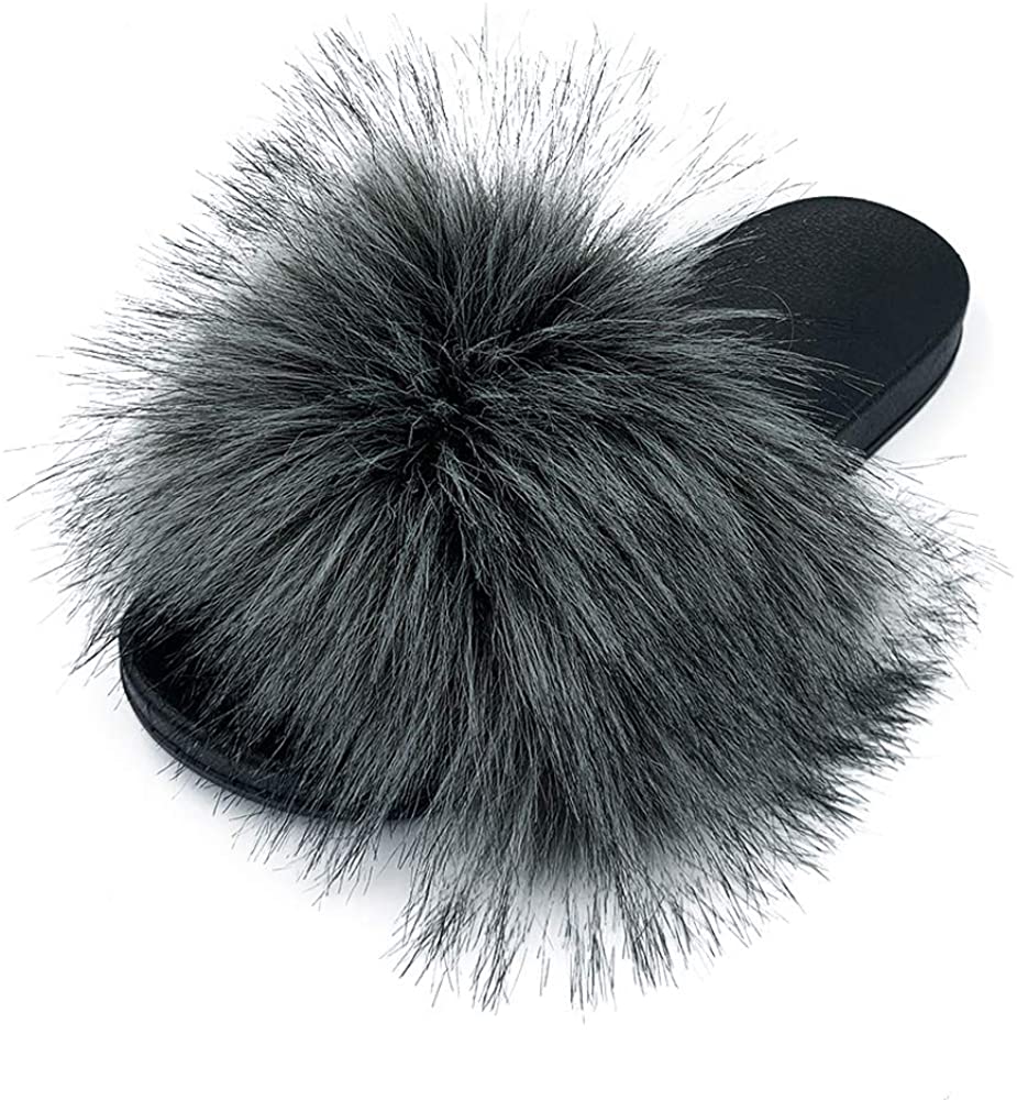 Womens Vegan Fur Slippers Fluffy Fuzzy Open Toe Slides Flip Flop